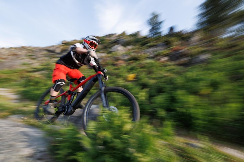 With the mullet configuration, you get the best of a 29" wheel in the front, offering control and stability, and the best of a 27.5" wheel in the back, providing traction and comfort.