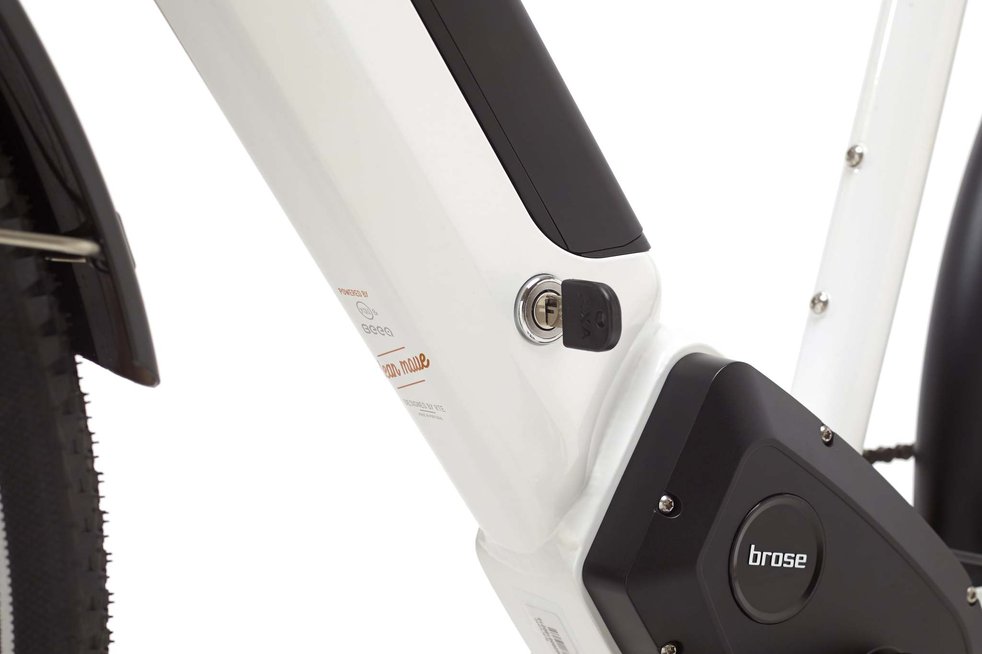 - Locked with a key, it can easily be removed for charging outside the bicycle, but it can also be charged directly on the bicycle.