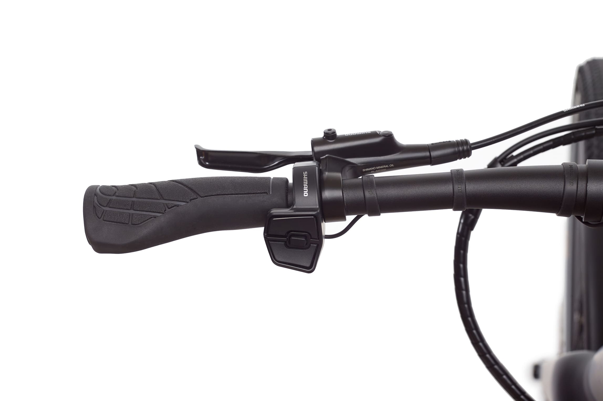 Good control of the bicycle thanks to the central integrated motor,the sturdy aluminium frame and the SHIMANO hydraulic brakes.