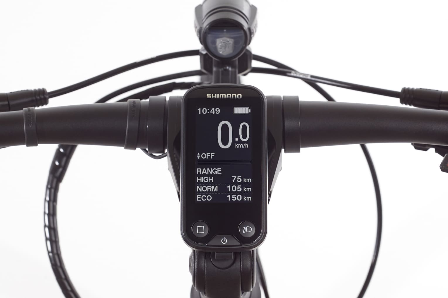 Pedal from 40km up to 100km (depending on the user’s weight, terrain conditions and altitude range), thanks to the efficient motor Shimano and the 418W/h, 36V battery.