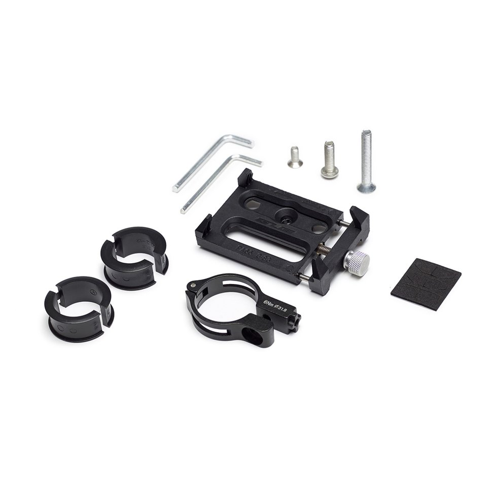 Universal holder compatible with all smartphone models. Easy installation by screwing it onto the handlebar for maximum stability. Thanks to the innovative rotating button system, the smartphone can be securely mounted in seconds.